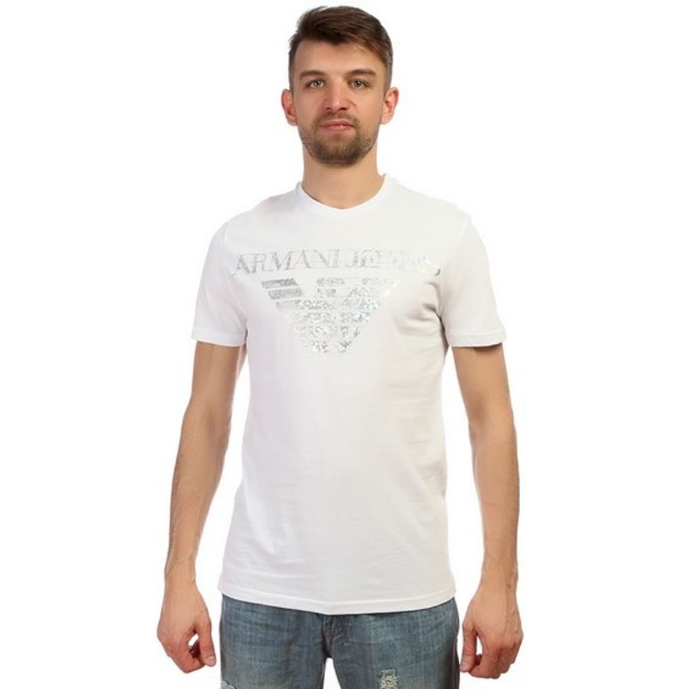 Мужская футболка белая с принтом Armani Jeans