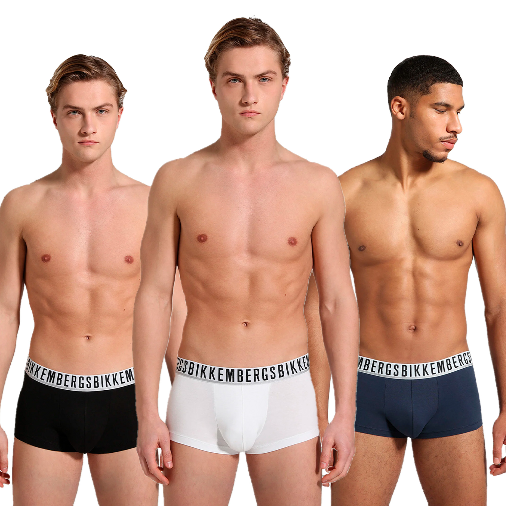 Мужские трусы боксеры (белый, темно-синий, черный) набор 3в1 Bikkembergs ESSENTIAL BKK1UTR01TR
