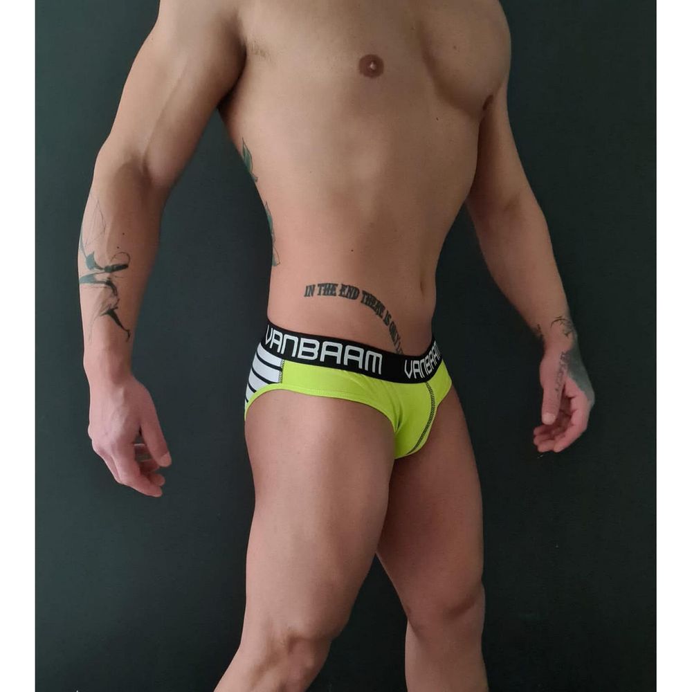Мужские трусы слипы салатовые с черно-белой вставкой Van Baam 48142