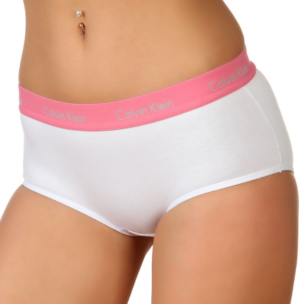 Женские трусы хипсы белые с розовым поясом Calvin Klein